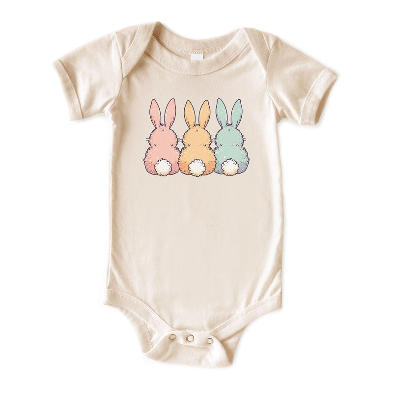 Colorful Bunny Trio with Name Natural Onesies® Brand