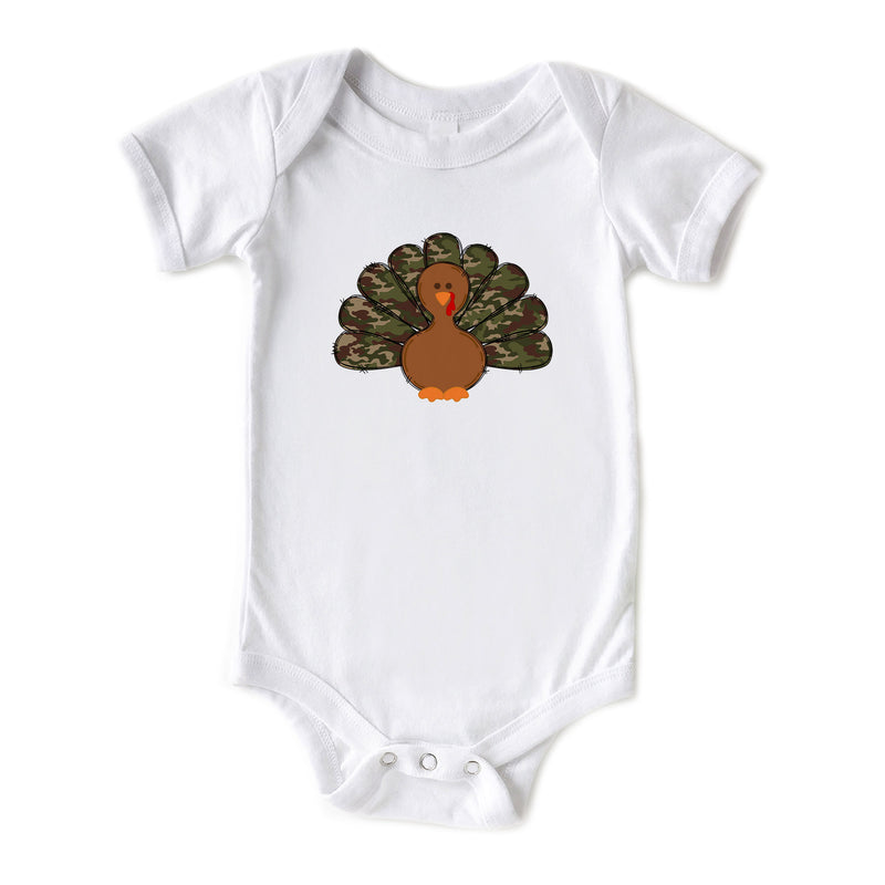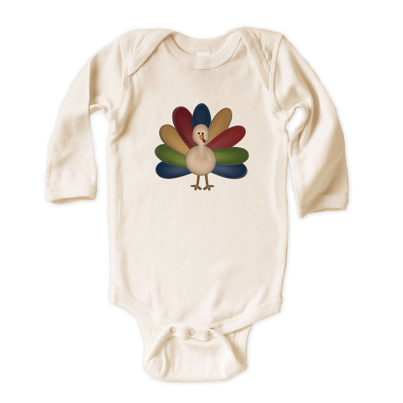 Navy Doodle Turkey with Name Natural Onesies® Brand