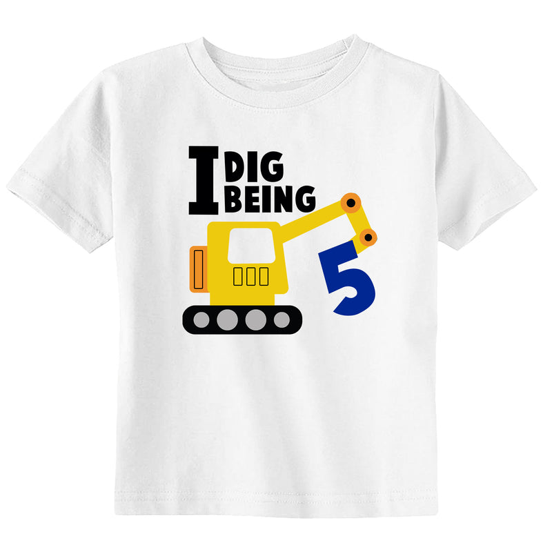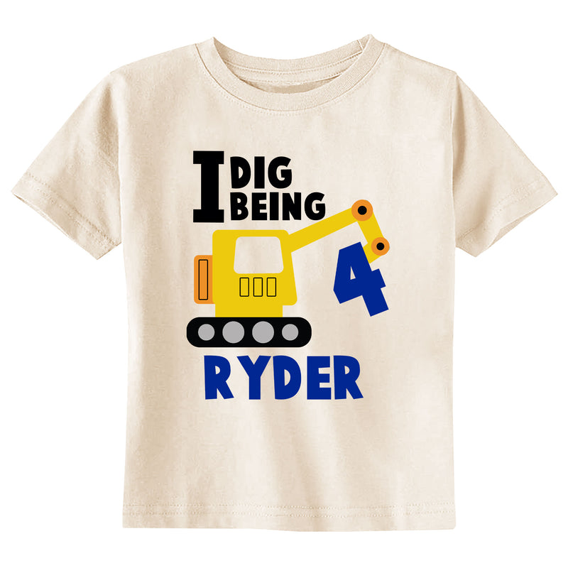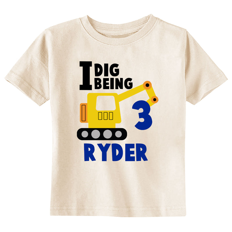 Watercolor Birthday Construction with Name Natural T-Shirt