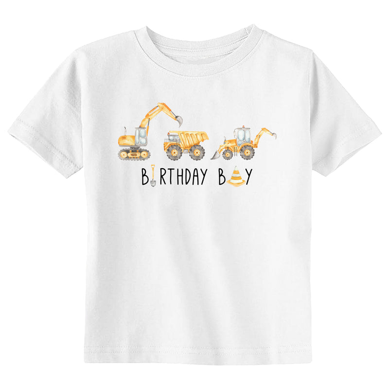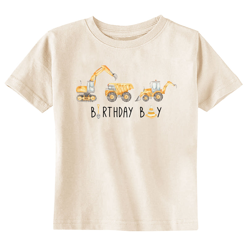 Watercolor Birthday Construction with Name Natural T-Shirt